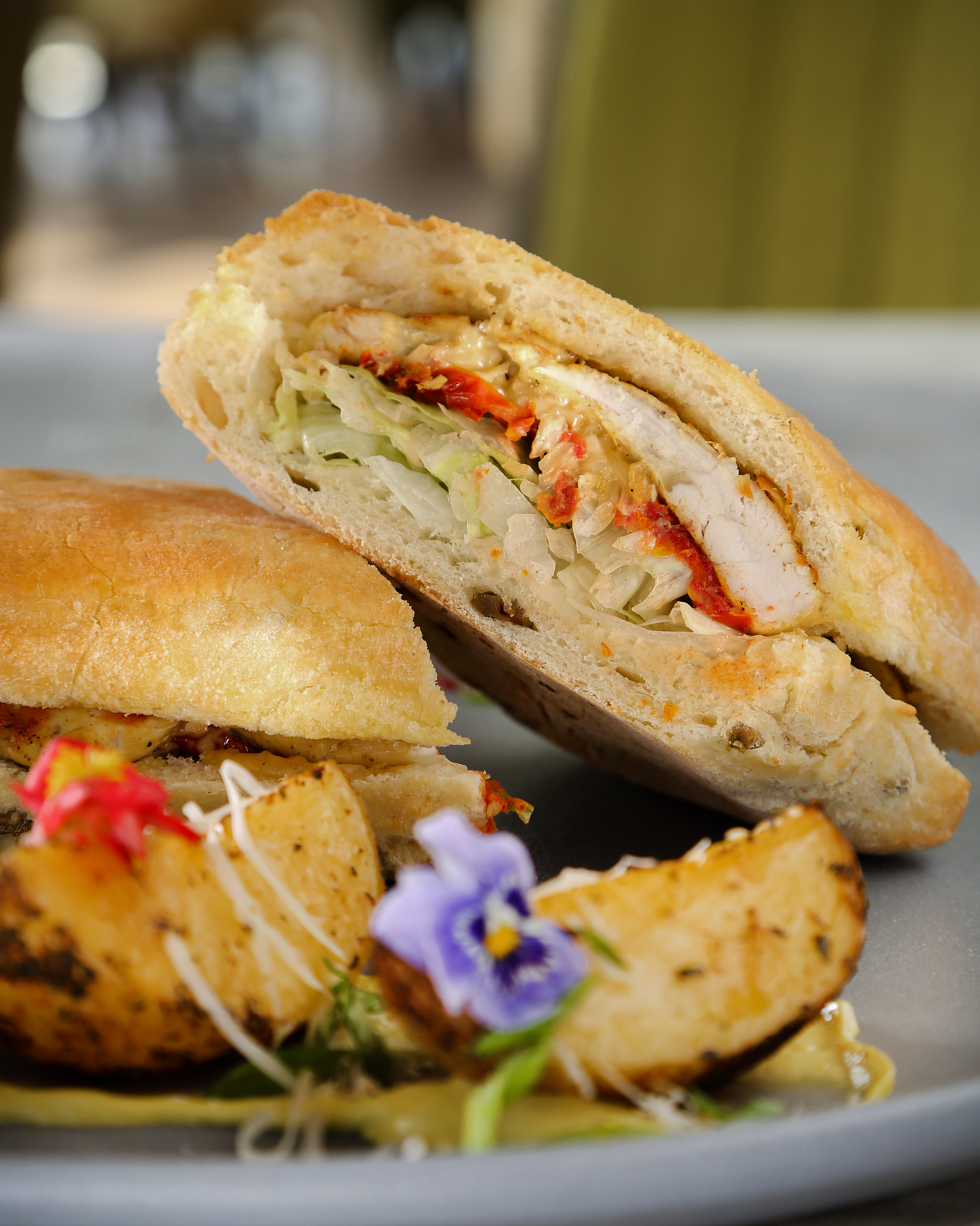 فيله مرغ گريل شده به همراه کاهو،گوجه خشک،سس سزار،پنير پارمسان