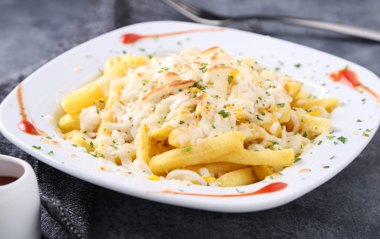 سیب زمینی سرخ شده با سس پنیر