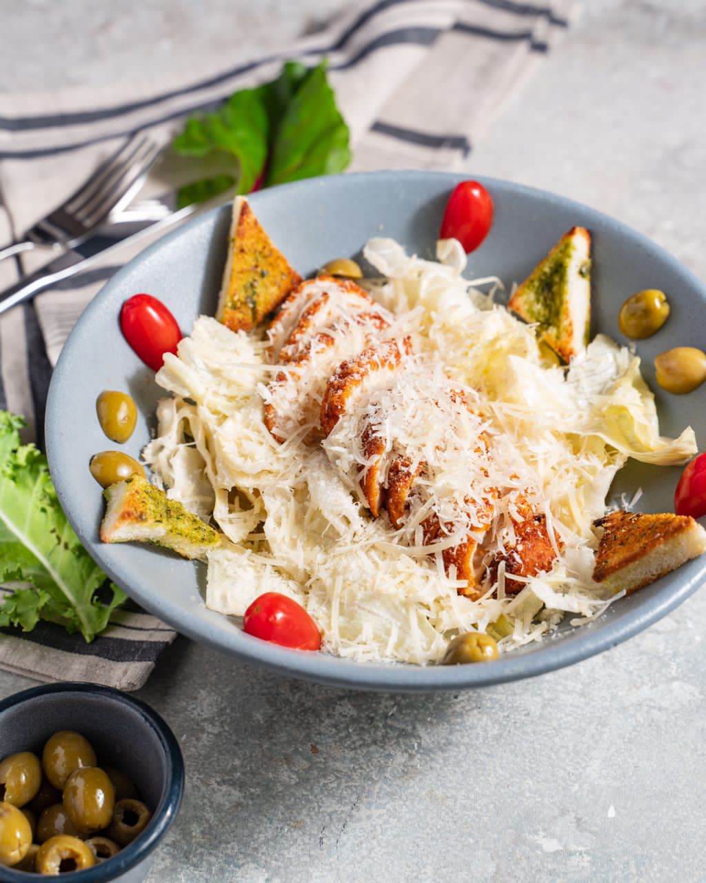 کاهو پيچ،مرغ سوخاري رول شده به همراه پنير،سس سزار ونان تست