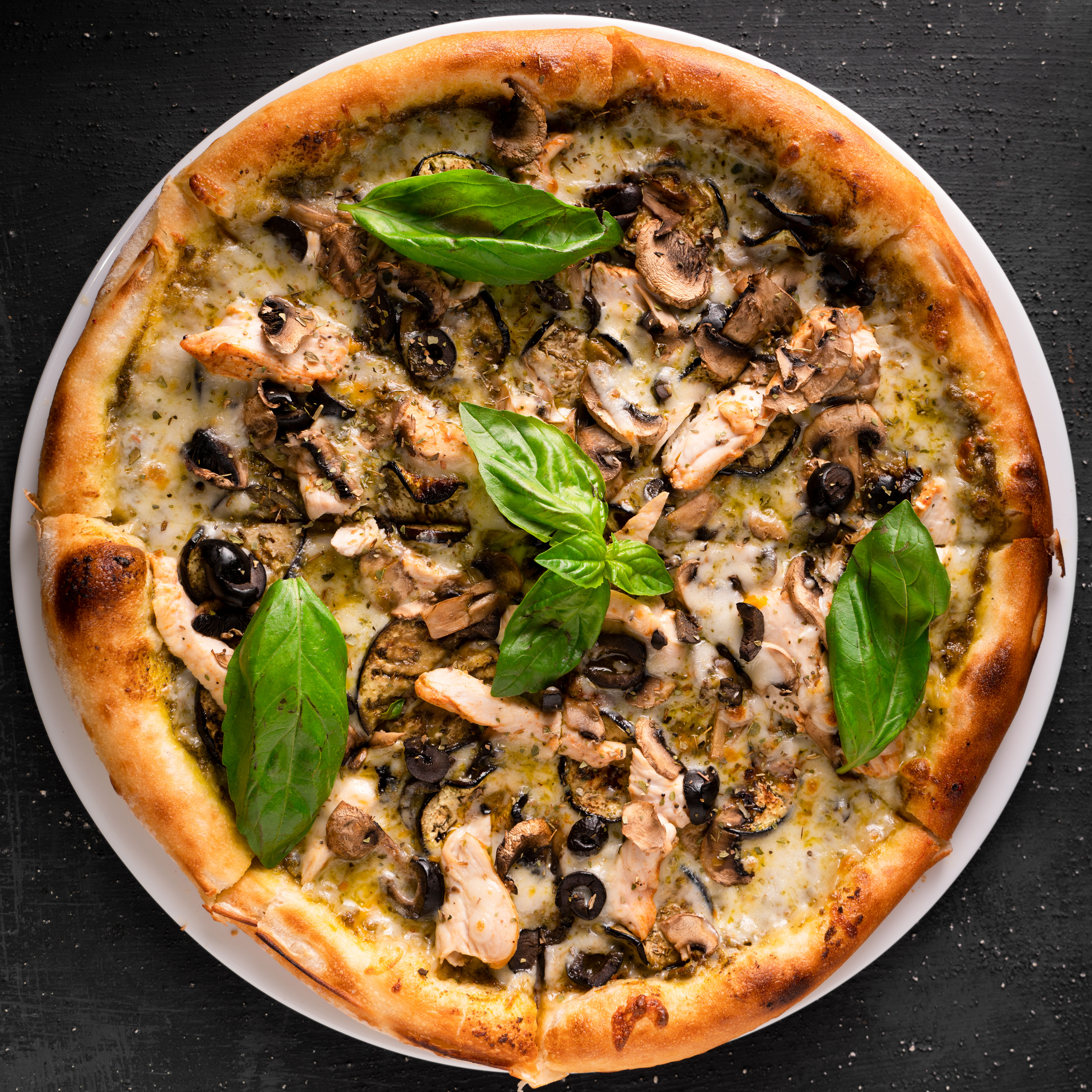 فيله مرغ ،بادمجان،زيتون،قارچ،ريحان،سس پستو