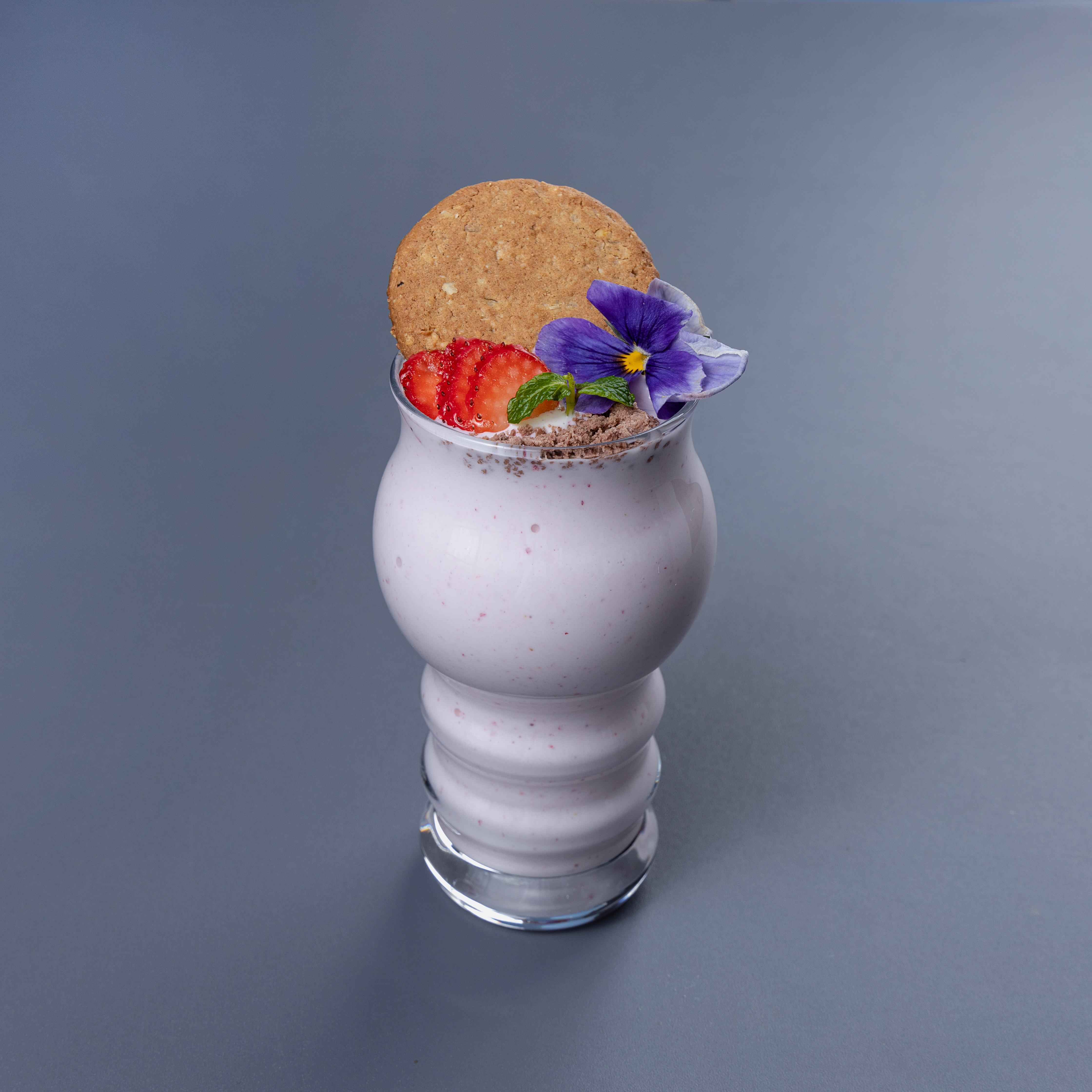 توت فرنگي ،بستني وانيل ،پودر کره بادام زميني