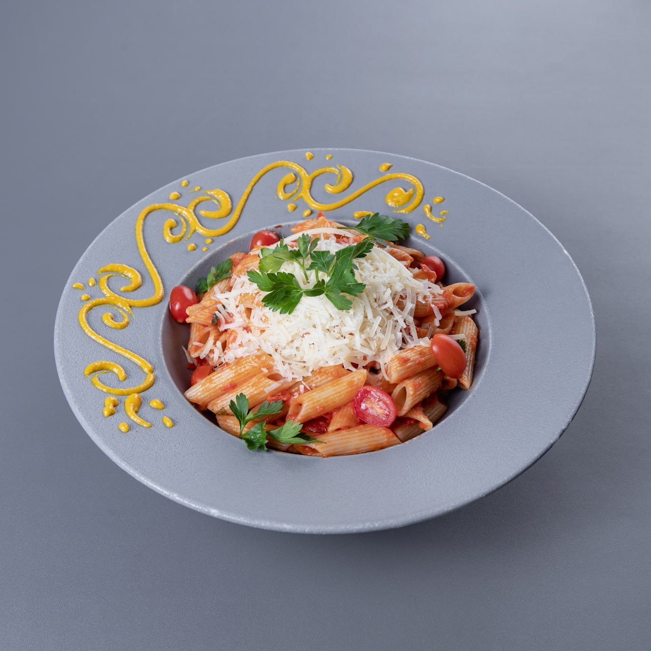 سينه مرغ ،پاستا پنه ،سس مارينارا،پنير موزارلا،پنير پارمزان
